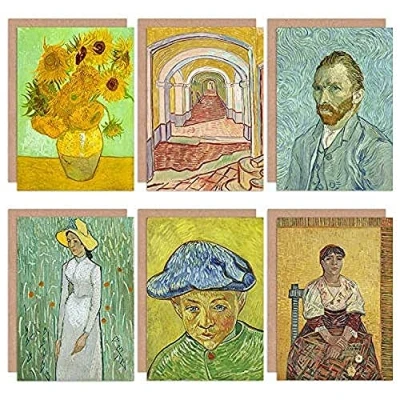 Artery8 Vincent Van Gogh Italian Woman Camille Gilr White Asylum Sunflowers Fine Art Greeting Card Pack of 6