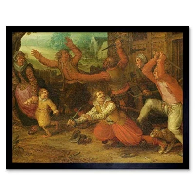 Artery8 Vinckboons Peasants Joy Expulsion Painting Art Print Framed Poster Wall Decor 12x16 inch