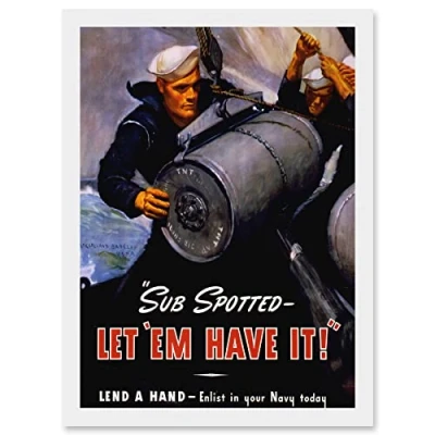 Artery8 Vintage Ad War WWII US Navy Submarine Bomb Sailor Military A4 Artwork Framed Wall Art Print