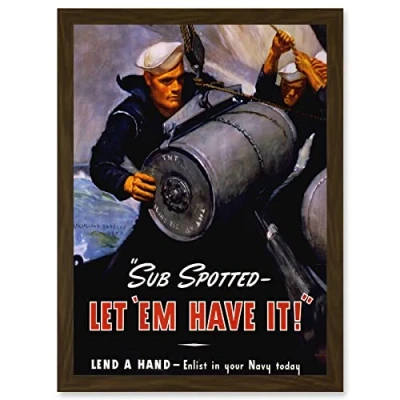 Artery8 Vintage Ad War WWII US Navy Submarine Bomb Sailor Military A4 Artwork Framed Wall Art Print