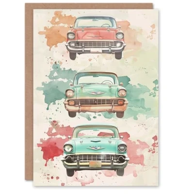 Artery8 Vintage Car Lover Pastel Watercolour Paint Splat Blank For Him Or Her Art Birthday Card