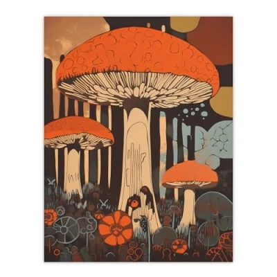 Artery8 Vintage Cep Mushroom Aesthetic Earthy Orange Boletus Kitchen Extra Large XL Wall Art Poster Print