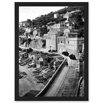 Artery8 Vintage Photo Corniche Road I Marseilles France Artwork Framed Wall Art Print A4