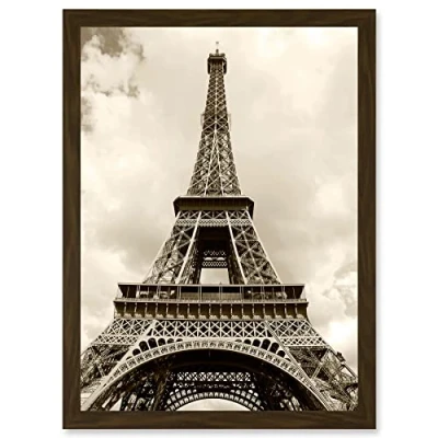 Artery8 Vintage Photo Landmark Eiffel Tower Sepia Paris France A4 Artwork Framed Wall Art Print