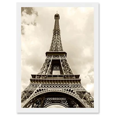 Artery8 Vintage Photo Landmark Eiffel Tower Sepia Paris France A4 Artwork Framed Wall Art Print