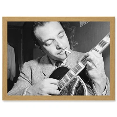 Artery8 Vintage Photo Music Legend Guitar Player Django Reinhardt Black & White A4 Artwork Framed Wall Art Print