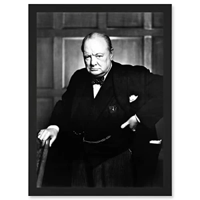 Artery8 Vintage Photo Portrait Winston Churchill Britain Prime Minister UK Artwork Framed Wall Art Print A4