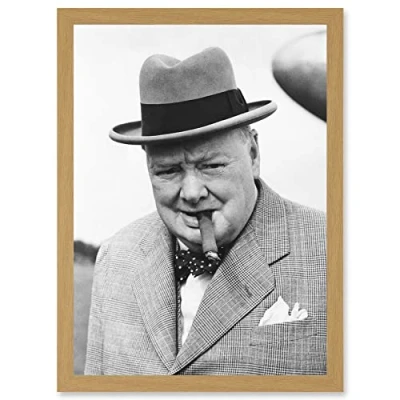 Artery8 Vintage Photo Winston Churchill Cigar Prime Minister Britain UK Artwork Framed Wall Art Print A4