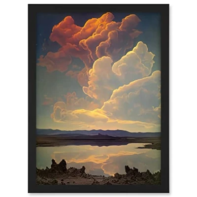 Artery8 Vintage Style Atmospheric Cloud Reflections in Lake Modern Watercolour Painting Artwork Framed A3 Wall Art Print