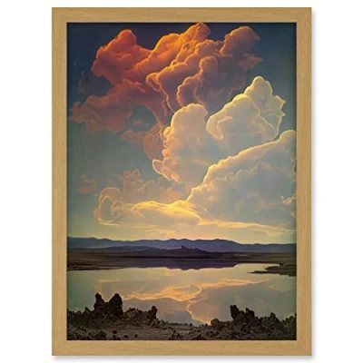 Artery8 Vintage Style Atmospheric Cloud Reflections in Lake Modern Watercolour Painting Artwork Framed A3 Wall Art Print