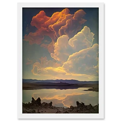 Artery8 Vintage Style Atmospheric Cloud Reflections in Lake Modern Watercolour Painting Artwork Framed Wall Art Print A4