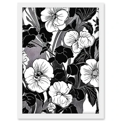Artery8 Viola Flower Blooms Black and White Illustration Artwork Framed A3 Wall Art Print