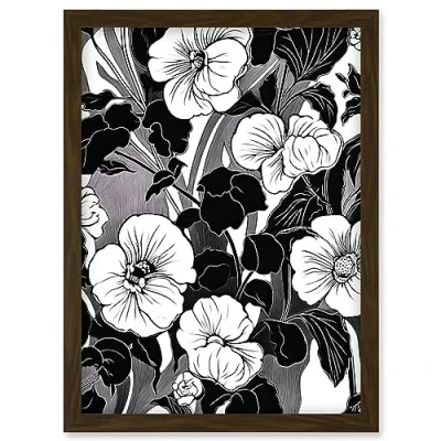 Artery8 Viola Flower Blooms Black and White Illustration Artwork Framed Wall Art Print A4