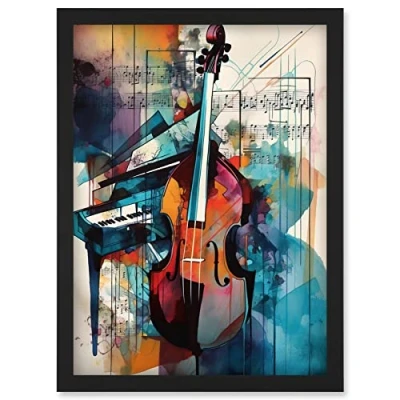 Artery8 Violin and Piano Classical Music Note Melody Concerto Abstract Modern Watercolour Painting Artwork Framed Wall Art Print A4