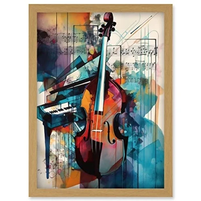 Artery8 Violin and Piano Classical Music Note Melody Concerto Abstract Modern Watercolour Painting Artwork Framed Wall Art Print A4