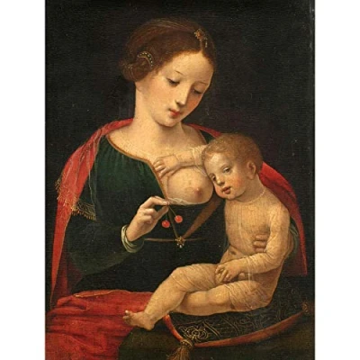 Artery8 Vrouwelijke Halffiguren Virgin Child Painting Large Wall Art Poster Print Thick Paper 18X24 Inch