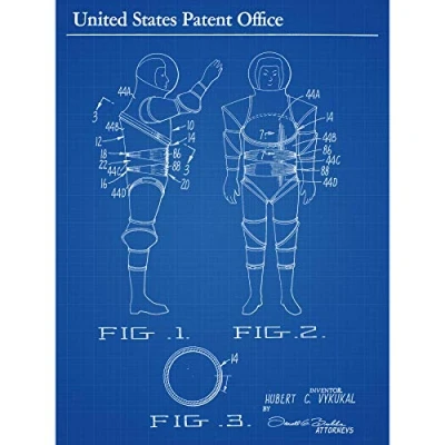 Artery8 Vykukal NASA Space Suit 1972 Moon Patent Plan Large Wall Art Poster Print Thick Paper 18X24 Inch