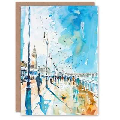 Artery8 Walk on the Promenade Watercolour Painting Greeting Birthday Card Him Her All Blank