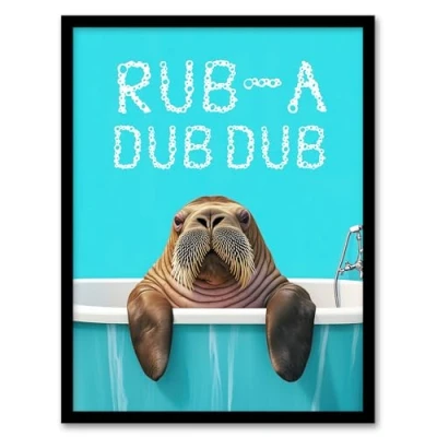 Artery8 Walrus in Bathtub Bath Time Rub A Dub Funny Bathroom Toilet Artwork Framed Wall Art Print A4