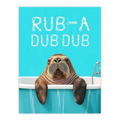 Artery8 Walrus in Bathtub Bath Time Rub A Dub Funny Bathroom Toilet Large Wall Art Poster Print Thick Paper 18X24 Inch