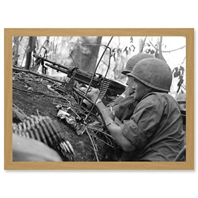 Artery8 War Vietnam USA GI Soldiers M60 Machine Gun 1966 Photo Artwork Framed Wall Art Print A4