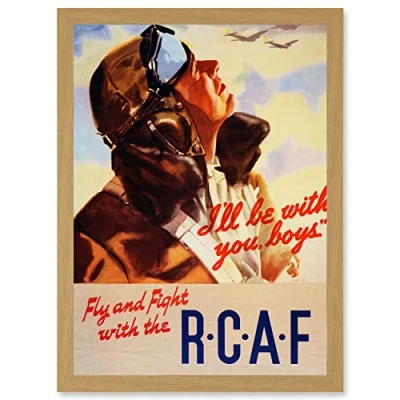 Artery8 War World WWII Royal Canada Airforce RCAF Pilot Fly Fight Artwork Framed Wall Art Print A4