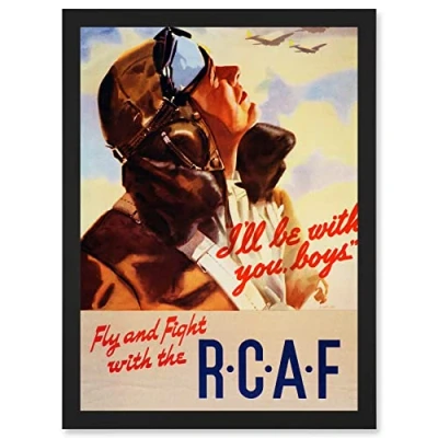 Artery8 War World WWII Royal Canada Airforce RCAF Pilot Fly Fight Artwork Framed Wall Art Print A4