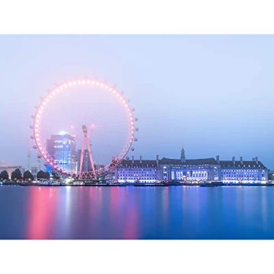 Artery8 Warby London Eye Foggy Morning Cityscape Photo Large Wall Art Poster Print Thick Paper 18X24 Inch