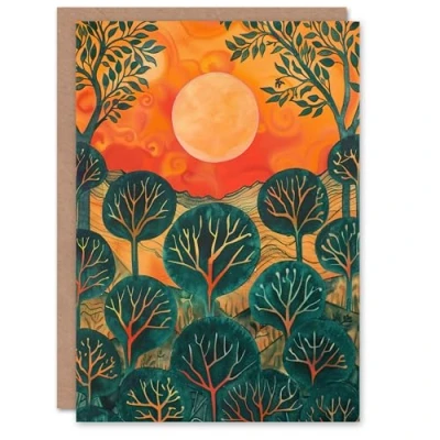 Artery8 Warm Sunrise Over Forest Painting Nature Greeting Birthday Card Him Her All Blank
