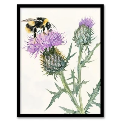 Artery8 Watercolour Bumblebee on Scottish Thistle Flower Living Room Artwork Framed Wall Art Print A4