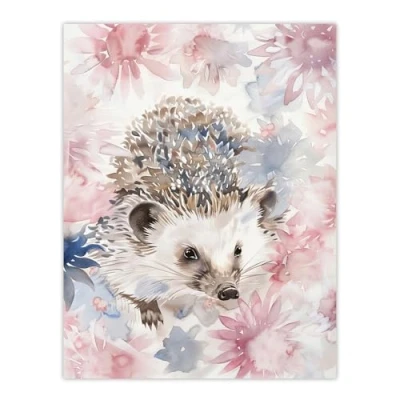 Artery8 Watercolour Hedgehog and Flowers Pink Pastel Living Room Large Wall Art Poster Print Thick Paper 18X24 Inch