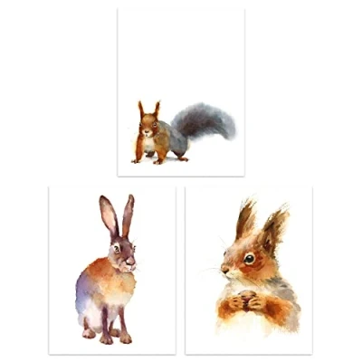 Artery8 Watercolour Red Squirrel Hare Rabbit Set Of 3 Unframed Wall Art Prints Bathroom Bedroom Aesthetic Woodland Painting 12X16 Inch