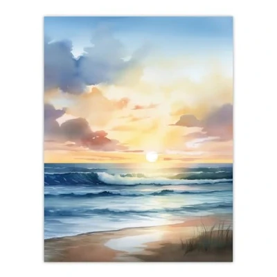 Artery8 Watercolour Waves Deserted Beach Seascape Extra Large XL Wall Art Poster Print