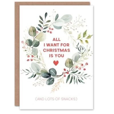 Artery8 Watercolour Wreath All I Want Is You And Snacks Blank For Him Or Her Art Christmas Card