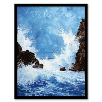 Artery8 Waves Crashing Rocks Sea Spray Oil Painting Living Room Artwork Framed Wall Art Print A4