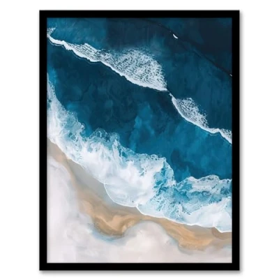Artery8 Waves on Beach From Above Artwork Coastal Calm Bathroom Framed Wall Art Print A4