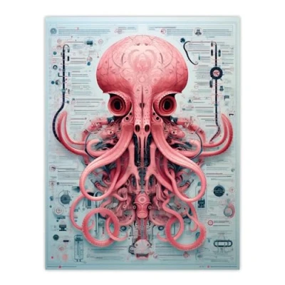 Artery8 Weapons Grade Octopus Robot Hybrid Secret Military Schematic Blueprint Futuristic Complex Arcane Manuscript Gift For Him Man Cave Large Wall Art Poster Print Thick Paper 18X24 Inch