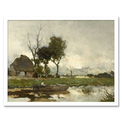 Artery8 Weissenbruch Autumn Landscape Cottage Painting Art Print Framed Poster Wall Decor 12x16 inch