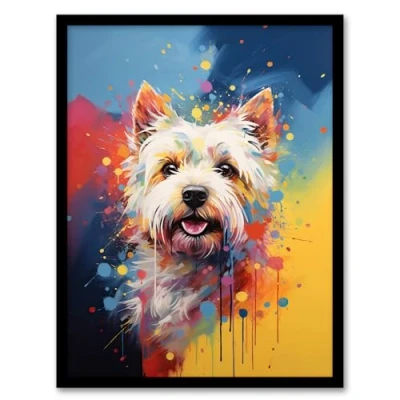 Artery8 West Highland Terrier Dog Lover Gift Pet Portrait Blue Yellow Orange Artwork Painting Framed Wall Art Print 18X24 Inch