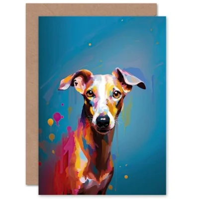 Artery8 Whippet Dog Lover Gift Pet Portrait Blue Orange Purple Artwork Painting Sealed Greeting Card Plus Envelope Blank inside