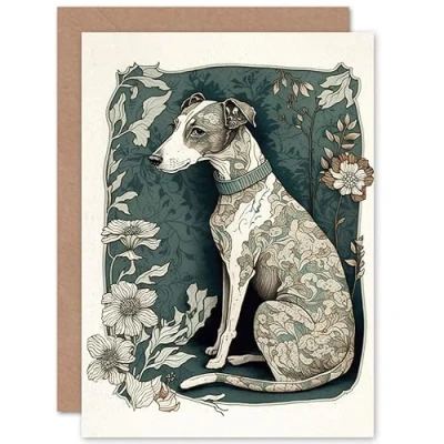 Artery8 Whippet Dog with Floral Pattern Fur Coat Art Nouveau Inspired Watercolour Illustration Birthday Sealed Greeting Card Plus Envelope Blank inside
