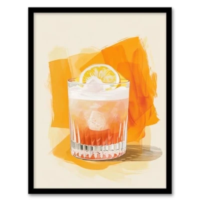 Artery8 Whiskey Sour Cocktail Fruit Slice Bar Watercolour Kitchen Artwork Framed Wall Art Print A4