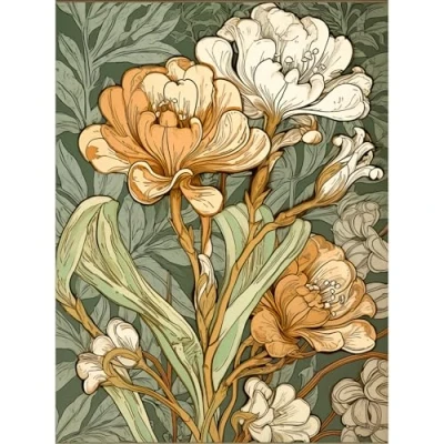 Artery8 White and Yellow Freesia Flower Blooms Watercolour Large Wall Art Poster Print Thick Paper 18X24 Inch