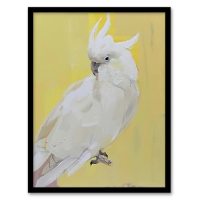 Artery8 White Cockatoo Parrot Bird on Yellow Oil Painting Living Room Artwork Framed Wall Art Print 18X24 Inch