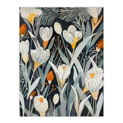 Artery8 White Crocus Flower Garden Artwork Dark Floral Living Room Large Wall Art Poster Print Thick Paper 18X24 Inch