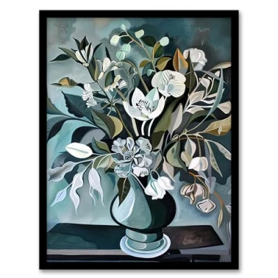 Artery8 White Flower Bouquet Vase Still Life Painting Living Room Artwork Framed Wall Art Print A4