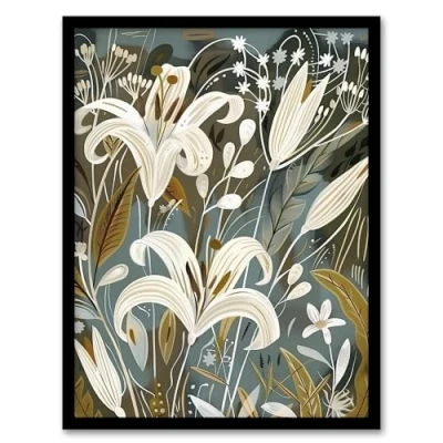 Artery8 White Lilies Flower Blooms Floral Artwork Living Room Framed Wall Art Print A4
