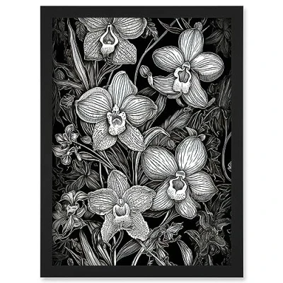 Artery8 White on Black Blooming Orchid Flower Plants Artwork Framed A3 Wall Art Print