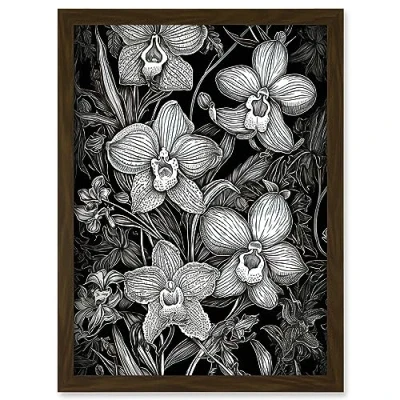 Artery8 White on Black Blooming Orchid Flower Plants Artwork Framed A3 Wall Art Print
