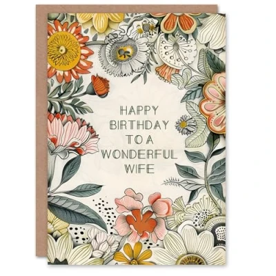 Artery8 Wife Happy Birthday Card Flower Bouquet Peony Daisies Sunflowers Botanical For Her Greeting